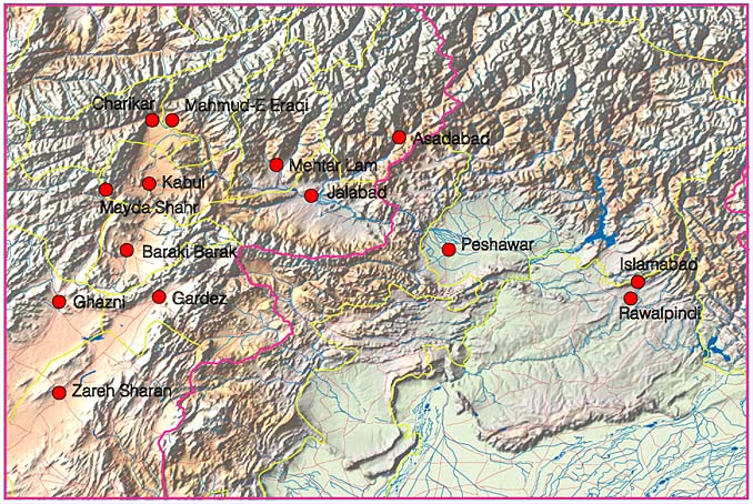 North-East Territory ![]() Afghanistan North-East 68º East to 74º East, 32º North to 36º North Includes parts of Eastern Afghanistan and Northern Pakistan territory File size: 4 Mb - Dimensions 1,438 X 960 pixels (14.4 X 9.6 inches at 100 dpi) Features JPEG relief map with overlaying EPS Illustrator with rivers, roads, towns, town names, provincial and national borders. The relief map has been screened down to 75% to give a more muted effect. ![]() Detail of North-East Afghanistan and Pakistan border, at 100% size. The relief map placed behind a multi layered Illustrator EPS vector map.
