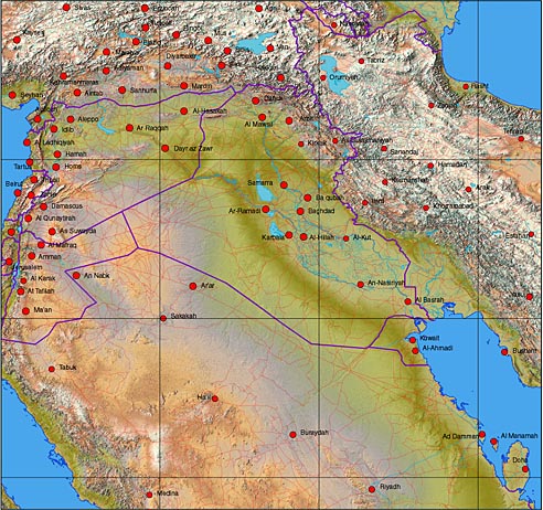 Includes parts of Saudi Arabia, Iran, Israel, Lebanon, Jordan, Turkey and Kuwait